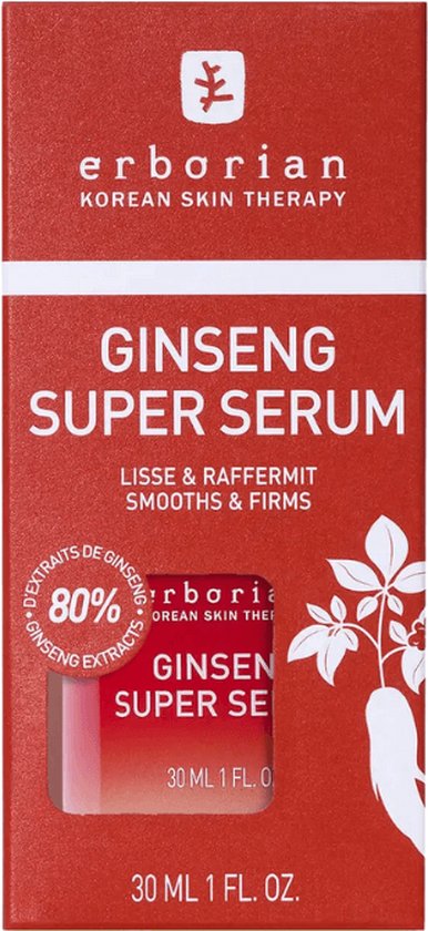 Het Erborian Ginseng Super Serum verstevigt en verzacht voor een jonger uitziende huid! Naast Koreaanse superingrediënten, zit er een speciaal gladmakend Ginseng-complex in dit serum om effectief fijne lijntjes en rimpels aan te pakken. Peptiden ondersteunen hierbij door verslappingen aan te maken en de huid te verstrakken. De krachtige formule bevat ook prebioticum dat herstellend en balancerend werkt.