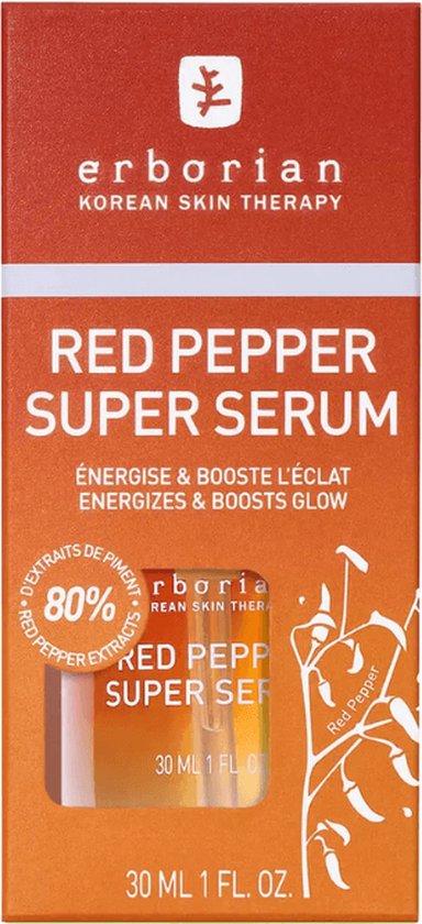 Versterk de natuurlijke glans van jouw huid met het Erborian Red Pepper Super Serum. De krachtige formule bestaat uit Koreaanse superingrediënten die naast hydrateren, ook exfoliëren om een gladde en egale teint te bereiken. Het serum bevat ook prebioticum dat herstellend en balancerend werkt – met een gezonde en stralende huid als resultaat!