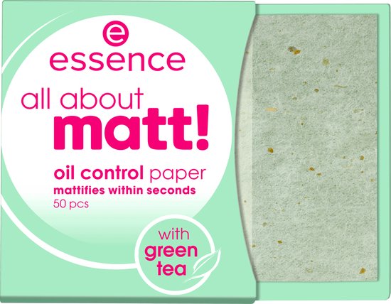 De essentie cosmetica Alles over mat! Oil Control Paper is een groen schoonheidswonder en schittert in een nieuw lichtgroen design. Of het nu thuis is of onderweg, op een eerste afspraakje of tijdens een girls night out – het vloeipapier met groene thee-extract in het speciale papier verwijdert ongewenste glans van het gezicht in een handomdraai. Het product wordt zachtjes op de huid gedrukt, absorbeert overtollige olie en talg, frist make-up op en zorgt voor een perfect matte teint.