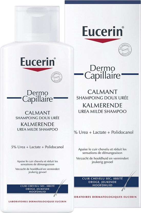 Ook geschikt als aanvullende huidverzorging bij bijvoorbeeld atopisch eczeem en psoriasis. Deze Eucerin Shampoo is verrijkt met ureum en lactaat, twee vochtvasthoudende factoren die de gezonde huid van nature aanmaakt, om je droge, jeukende hoofdhuid de voedende verzorging te geven die hij nodig heeft. Bij gebruik in combinatie met Eucerin DermoCapillaire Kalmerende Hoofdhuidbehandeling Urea kalmeert en verlicht deze de jeuk en droogheid en geeft jouw haar een gezonde glans en zorgt dat het soepel aanvoelt.