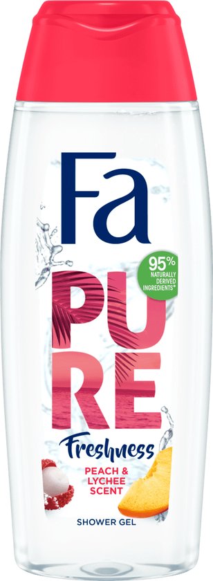 Ga op avontuur en ervaar een tropische douche verrijkt met perzik & lychee met Fa Pure Freshness Peach & Lychee Douchegel. De formule bevat 95% ingrediënten van natuurlijke oorsprong (incl. water) en de verpakking bestaat uit 100% gerecycled plastic (excl dop), waaronder 25% social plastic.