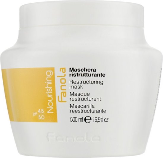 Fanola Nutri Care Masker is een herstellend masker dat uitermate geschikt in combinatie met de Fanola Shampoo. Dit voedende Restructing Mask herstelt het haar dat door kleuren of ontkleuren beschadigd is. Het is ideaal voor droog of kroezig haar. Daarnaast is het verrijkt met melkproteïne die bekend staan om hun voedende en ontwarrende eigenschappen. Maakt het haar heerlijk soepel en doorkambaar.