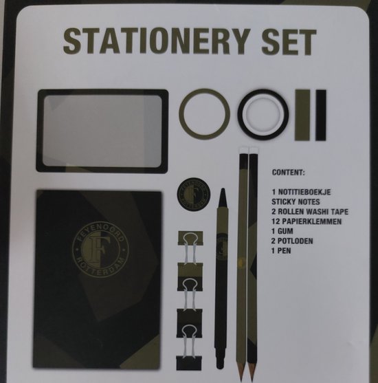 Feyenoord Stationery Set – Schrijfwaren set – 20-DELIG – Washi Tapes – Notitieboekje – Potloden – Papierklemmen – Pen – Gum – Sticky Notes