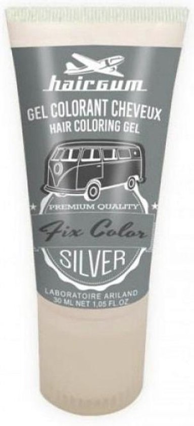 Hairgum Fix Color Hair Coloring Gel Silver Deze gel is een speciaal samengestelde gekleurde gel die zorgt voor directe kleuring en voor een sterke fixatie De kleur is direct zichtbaar en makkelijk uitwasbaar met shampoo Gebruik De Silver gel kan direct worden aangebracht op het haar
