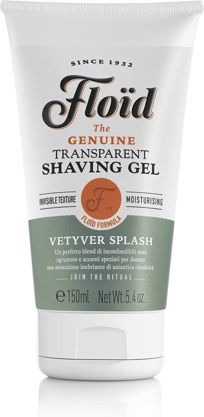 Floid Vetyver Splash Floid De echte scheergel, 150 ml. Als je op zoek bent naar een scheergel die je een soepele en comfortabele scheerervaring geeft, dan is Floïd Vetiver Splash Scheergel de ideale oplossing voor jou. Deze transparante gel is ontworpen om het glijden van het mes te vergemakkelijken. Unisex