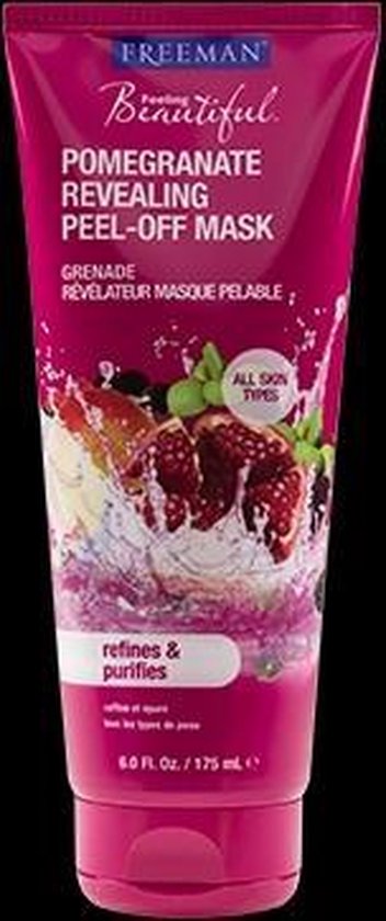 Het Freeman Peel Off Masker met granaatappel zuivert en versterkt de huid. Het bevat het Mega 8-complex: goji, acai, granaatappel, mango, mangosteen, cranberry, noni en blauwe bes die allen rijk zijn aan anti-oxidanten. Anti-oxidanten helpen de schade aan de huid te neutraliseren waardoor de huid er weer zacht en als nieuw uitziet.