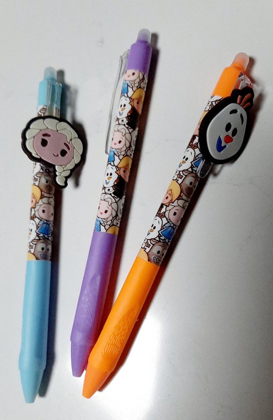 Frozen – 3x uitwisbare gelpen – oranje paars blauw – olaf en elsa – gelpennen