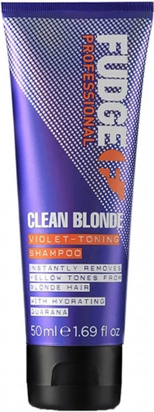 Fudge Clean Blonde shampoo reinigt en neutraliseert ongewenste gele en koperkleurige tonen in blond haar. Let op: deze shampoo heeft een zeer sterke dosering om de gele gloed eruit te halen. Bij poreus haar kan het violet doorslaan.
