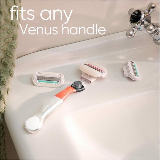 De Venus scheermesjes zijn ontworpen voor het vrouwelijk lichaam. De Venus V Edition Comfortglide Strawberry scheermesjes voor vrouwen hebben 5 mesjes voor een gladde- zachte scheerbeurt met langdurig resultaat. De navulmesjes zijn uitgerust met rijke Moisture Bars met een lichte aardbeiengeur die ervoor zorgen dat de huid vocht vasthoudt en dus niet uitdroogt. Met een bewegend ontwerp dat zich aan uw lichaamscontouren aanpast. Elk Venus navulmesje past op elk Venus scheersysteem (behalve Simply Venus en Venus voor de Schaamstreek).