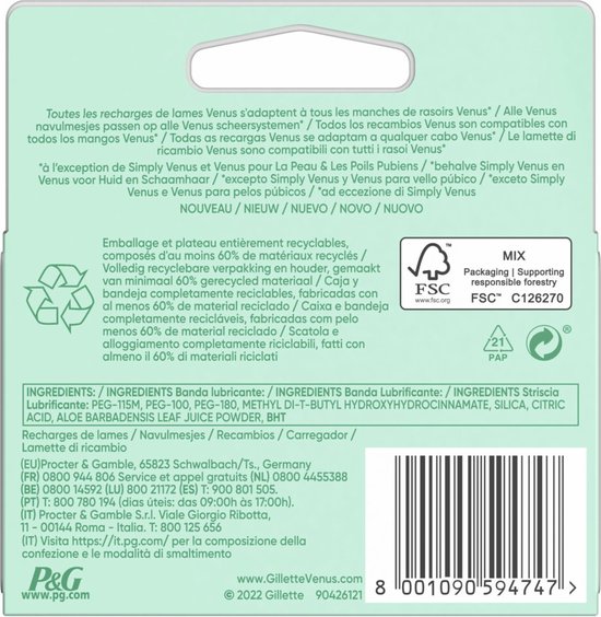 - Elk Venus navulmesje past op elk Venus scheersysteem (behalve Simply Venus en Venus voor de Schaamstreek)