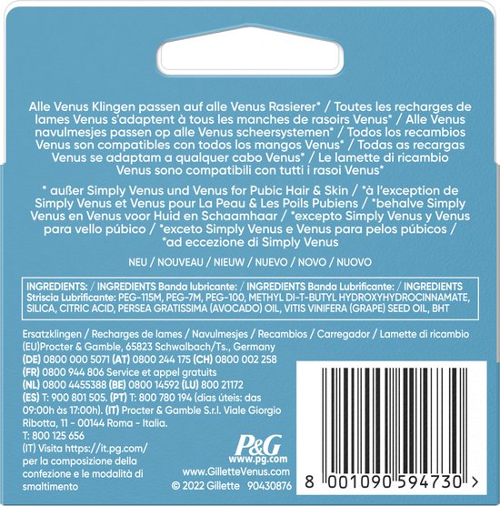 - Houd de handgreep, vervang alleen de mesjes: Alle Venus navulmesjes passen op alle Venus scheersystemen (behalve Simply Venus en Venus Voor Huid en Schaamhaar)