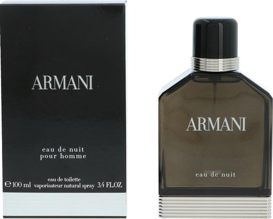 Introduced in 2013 Giorgio Armani s Eau de Nuit for men is a robust and masculine scent featuring tones of cedar and amber The warm sharp fragrance opens with a splash of bergamot that leads into warm cardamom notes before continuing with dramatic notes of iris making it a wonderful choice for the man with a tough exterior but a warm heart This full bodied fragrance finishes strong and lives up to the Giorgio Armani reputation