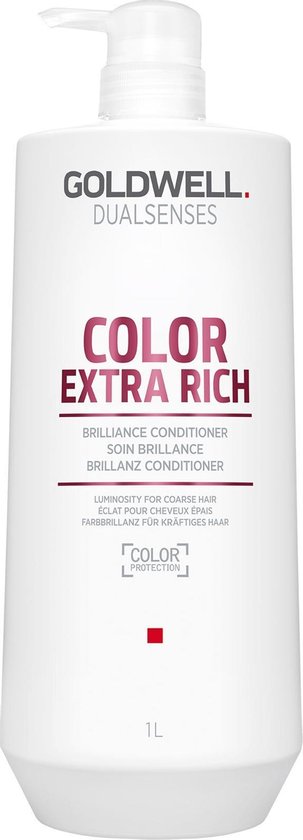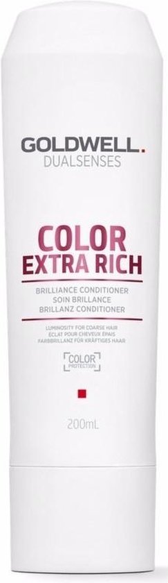 Goldwell New Dualsenses Color Extra Rich Brilliance Conditioner Conditioner voor dik tot weerbarstig haar verrijkt met microPROtec complex en Luminescine Ontwart direct en geeft direct kleurbriljantie aan gekleurd en ongekleurd haar Gebruik Aanbrengen op vochtig haar Inmasseren en zorgvuldig uitspoelen