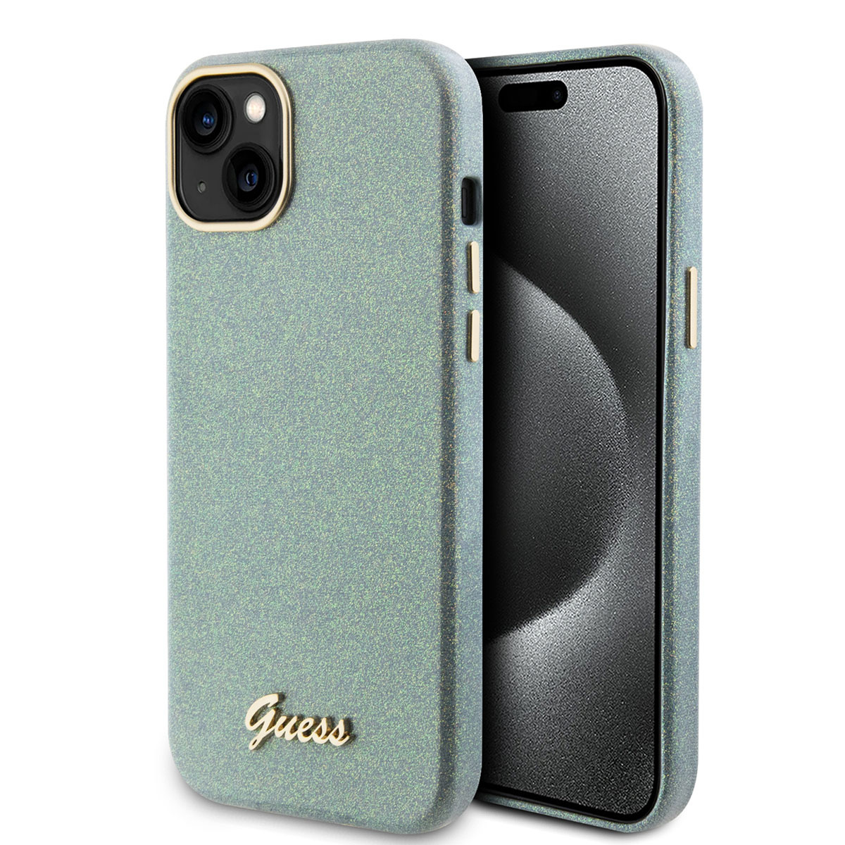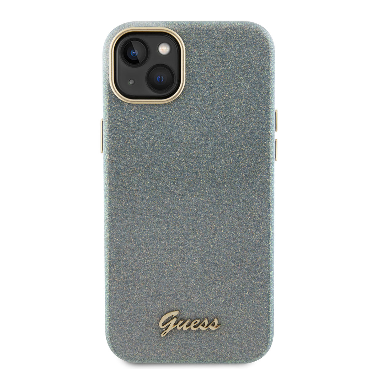 Guess iPhone 15 & 14 Plus TPU Back Cover – Glitter Glossy Script – Khaki