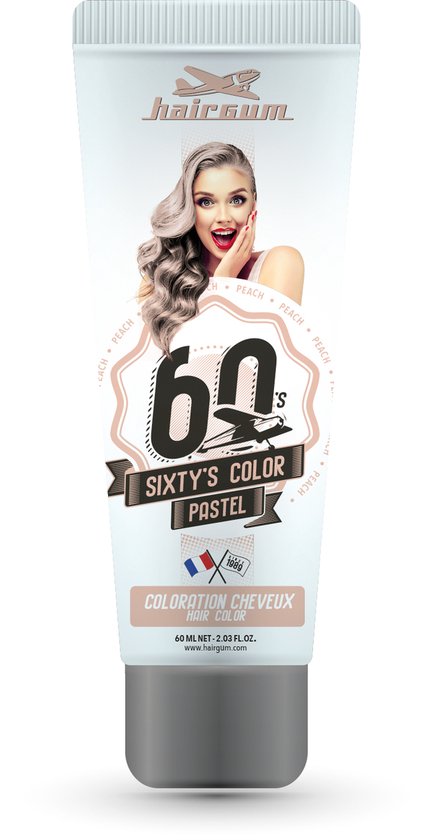 De Hairgum Sixtys Color is een gloednieuwe formule met een meer crA merige textuur die sterk geconcentreerd is Het is speciaal ontwikkeld voor de 30ste verjaardag van Hairgum Deze kleurcrA me geeft een soepel zacht en glanzend resultaat zonder het haar te beschadigen Na 10 wasbeurten vervaagt de kleur weer