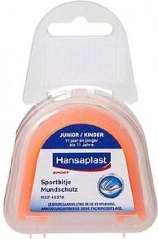 Hansaplast Sportbitje junior t/m 11 jaar Kleur – Blauw/oranje Productbeschrijving: Bescherm je tanden tijdens het sporten met het Hansaplast Junior Sportbitje voor Kinderen. Je knipt het sportbitje eenvoudig op maat. Hoe gebruik je het Hansaplast Junior Sportbitje voor Kinderen? 1. Plaats het Hansaplast sportbitje over je boventanden om de maat te testen. 2. Is het bitje te lang? Knip deze dan af tot een comfortabel formaat. 3. Test dit door het bitje stevig met je tong tegen je gehemelte te drukken en er op te bijten. 4. Plaats het bitje 10 seconden in bijna kokend water. Haal het met een grote lepel uit het water en schud het sportbitje droog. 5. Stop het bitje direct in je mond en bijt voorzichtig maar stevig voor een gelijke afdruk. (Het bitje voelt warm, maar zal je mond niet verbranden) 6. Zuig het bitje op de juiste plaats door met je tong tegen je gehemelte te drukken. Was het sportbitje na elk gebruik met een milde reiniger. Spoel af met water en droog het bitje goed af. Stop hem daarna weer in het doosje. Het Hansaplast Junior Sportbitje voor Kinderen is geschikt voor kinderen van 11 jaar en jonger. EAN code: 4005900518880