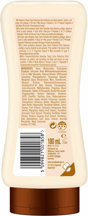 Voor de lange dagen die je zonnebadend doorgebrengt, laat Hawaiian Tropic® Satin Protection SPF50 zonnebrand lotion je huid stralen. Deze luxe formule laat de huid stralen en biedt tegelijkertijd een effectieve bescherming tegen de zon.