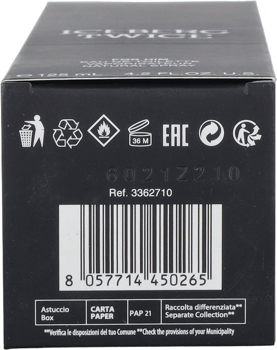Laat je verrassen door het 100% originele Herenparfum EDT Iceberg Twice For Him (125 ml) en wees jezelf dankzij dit exclusieve mannenparfum met een unieke en persoonlijke geur. Ontdek de 100% originele Iceberg producten!