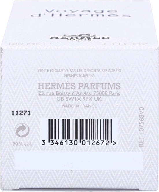 Hermès Hermes Paris Voyage Eau De Toilette Recargable 100ml Spray