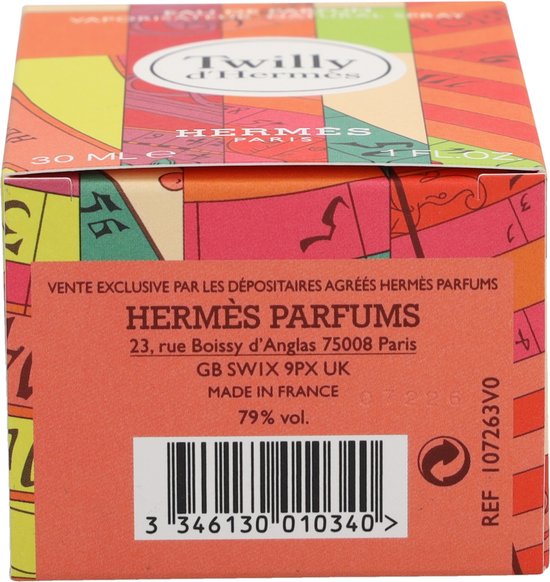 Hermès Twilly Eau de Parfum Spray is een betoverend bloemig fris, licht parfum van bijzondere intensiteit. Net als de Twilly’s, de iconische kleurrijke zijden linten van het label Hermès, danst het parfum alle zintuigen rond op een zomerse lichte en fascinerend kantige manier. Het kunst parfum doet het met drie geurnoten. Verse gember bepaalt de intense topnoot. Een zoete hint neemt de kruidigheid weg. De hartnoot bekoort met de sensuele geur van delicate witte tuberoos in de ochtenddauw. De basisnoot voegt vrouwelijke elegantie en diepte toe aan het parfum met het fijnste sandelhout