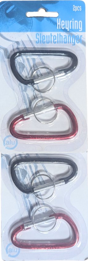 De karabijnhaken zijn gemaakt uit aluminium en geadoniseerd (voorzien van een oppervlaktebehandeling met een oxidelaag). De sluiting is van stevig roestvrijstaal.
