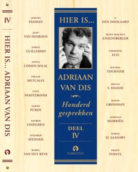 Hier is… Adriaan van Dis is het legendarische Nederlandse praatprogramma waarin Adriaan van Dis beroemde buitenlandse en Nederlandse schrijvers ontving. Het programma, dat tussen 1983 en 1992 door de VPRO werd uitgezonden, geldt nog steeds als het enige succesvolle Nederlandse tv-programma over literatuur. Uit de meer dan 200 gesprekken die in de loop van de jaren in het programma zijn gevoerd heeft Adriaan van Dis, samen met regisseur Ellen Jens, dertig nieuwe uitzendingen van een uur samengesteld. Honderd gesprekken die allemaal begonnen met de vraag: “Rode wijn, witte wijn of water?” Bovendien laat Adriaan van Dis voorafgaand aan iedere uitzending herinneringen op aan de gasten. Dat levert prachtige anekdotes op over ondermeer de woede-uitbarsting van Willem Oltmans, de verkoopcijfers van Annie Cohen- Solal, de volgelingen van de Dalai Lama en het sterrengedrag van V.S. Naipaul. Adriaan van Dis ontving voor dit programma in 1986 de Zilveren Nipkowschijf voor het beste televisieprogramma. Adriaan van Dis: “Goedendag. Ik bevind mij hier op de lege tribune van De IJsbreker in Amsterdam. In deze ruimte kwam in maart 1983 publiek bijeen om de eerste opnames bij te wonen van Hier is… Adriaan van Dis. Zesendertig jaar oud was ik, zonder enige televisie-ervaring, al wou ik er wel erg graag op. Met schrijvers, geleerden en politici praten, dat was de opdracht. En de vensters openen: veel buitenlandse gasten uitnodigen en vooral niet hurken. Negen jaar lang zou de VPRO dit prgramma uitzenden. Nog spreek ik wel eens mensen die zeggen: “Wij keken elke week.” Maar het was maar een maal per maand, op zondag… 8 keer per jaar. We begonnen toen er nog maar twee Nederlandse netten waren. De commerciëlen bestonden niet. Als wij uitzonden, zat de Evangelische Omroep dikwijls aan de andere kant – zo trok je vanzelf kijkers. Er was ook nog geen afstandsbediening. Om mij de nek om te draaien moest je uit je luie stoel opstaan. Zo won ik ook het oor van mensen die aanvankelijk moeite hadden met mijn bekakte stemgeluid, of erger, met het woord literatuur. En dan spraken we ook nog over boeken alsof ze deel uitmaakten van ons dagelijks leven. Doodeng. Toch bleken juist deze gesprekken aan te slaan, misschien omdat schrijvers vaak zulke goede getuigen van hun tijd bleken te zijn. Hun verhalen sloegen aan. Steeds meer buitenlandse auteurs namen de IJsbreker op in hun tournee. De eerste uitzending begon met een schrijver: Hugo Claus, een man die licht over een ernstig vak kan praten. Met hem werd de toon gezet."<br />