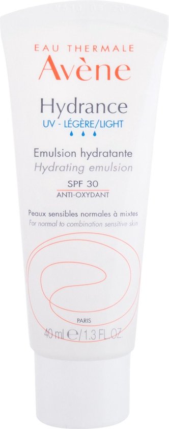 AvA ne Hydrance UV LA c gA re Emulsion Hydratante SPF30 Hydrateer je huid en bescherm haar dagelijks tegen UV stralen vrije radicalen en vervuiling De lichte textuur met matte finish maakt de huid zacht en soepel en doet haar de hele dag lang stralen Gebruik s Ochtends op het gezicht hals en decolletA c aanbrengen