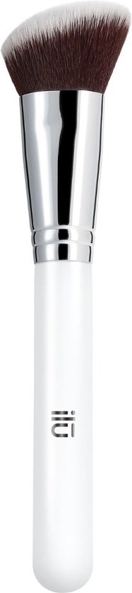 Ilu Angled Blush Kabuki is dankzij de hoekvormige borstelperfect voor het aanbrengen van blushers, bronzer en contouren. De borstelharen zijn van hoogwaardige kwaliteit en zijn gemaakt van taklonvezels. Perfect voor mensen met een gevoelige huid. Hierdoor is het ideaal om de haren gemakkelijk schoon te maken en te kunnen desinfecteren. Deze brush is geschikt voor veganisten.