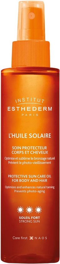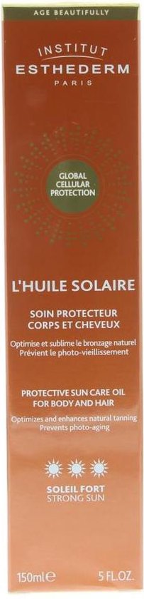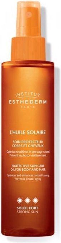 Institut Esthederm Solaire L Huile Solaire De huid wordt perfect beschermd tegen de negatieve effecten van de zon en tegen huidveroudering De gebruinde teint is snel en voor lange tijd gesublimeerd en dit gebeurd op een veilige manier De huid en het haar zijn gevoed voelen satijnzacht aan zijn licht geparfumeerd en onthullen al hun schoonheid Gebruik Sprayen op het lichaam en haar circa 20 minuten voor blootstelling aan de zon Hoge bescherming