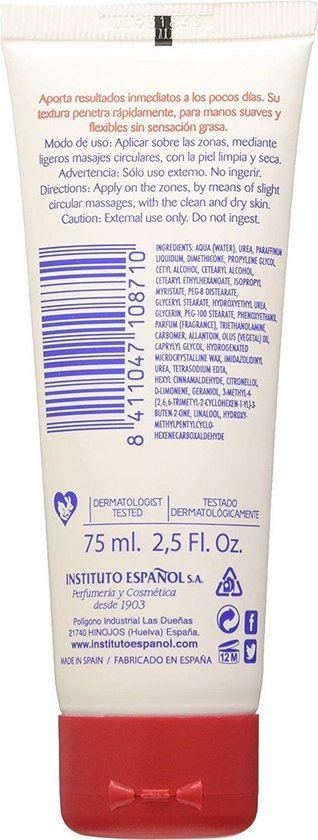 INSTITUTO ESPANOL UREA vochtinbrengende créme bevat maar liefst 20% van de werkzame stof – ureum.