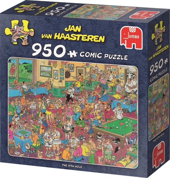 Jan van Haasteren The 19th Hole 950 pcs. Soort: Legpuzzel. Aantal puzzles: 950 stuk(s). Genre: Stripfiguren, Doelpubliek: Volwassenen, Aanbevolen geslacht: Heren/dames