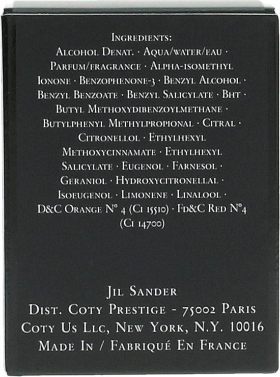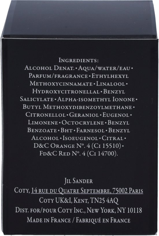 Jil Sander No.4 Eau de parfum Damesparfum – 30 ml Productbeschrijving: De Jil Sander No 4 eau de parfum spray opent op een frisse en fruitige wijze door gebruik te maken van bergamot, perzik en pruimen. Jil Sander No. 4 is een intrigerende geur die vrouwelijkheid viert. De eau de parfum opent met rozen, vergezeld door de bloemige noten van geranium. Tonen van verse perzik, pruim en bergamot worden verweven met een zweem anijslucht. Het luxueuze hart bevat een verfijnde compositie van roos, viooltjes, jasmijn, tuberoos, heliotroop en ylang-ylang. Dragon, mirre en nootmuskaat zorgen voor de aromatische toets in Jil Sander No. 4. De rijke basis onthult het oriëntaalse en elegante karakter van No. 4 met amber, sandelhout, eikenmos, patchouli, vanille, muskus, koriander, civet, ceder en tonkaboon.