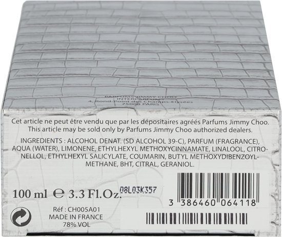 Jimmy Choo MAN le premier parfum pour Homme par Jimmy Choo Jimmy Choo Man est une fragrance effervescente qui incarne tout lesprit de lhomme Jimmy Choo Une fougA re aromatique boisA c e souvre sur une envolA c e de lavande mAalA c e A la mandarine En cA ur des notes fraA r ches de gA c ranium se joignent A la feuille dananas pour composer un accord croquant En fond le patchouli signe la fragrance avec sophistication Le flacon gris fumA c inspirA c par une flasque ancienne sallie A un A c tui brosseA c argentA c en peau de crocodile en relief