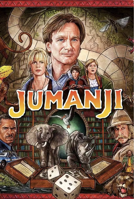 Het jongetje Alan Parrish (Robin Williams) ontdekt een mysterieus bordspel, maar is niet bekend met de bovennatuurlijke krachten die het in zich heeft. Maar dan wordt hij op magische wijze, voor de ogen van zijn vriendinnetje Sarah, de wilde jungle van Jumanji ingezogen. Hij verblijft hier voor 26 jaar, totdat hij door twee nietsvermoedende kinderen uit het spel wordt bevrijd. Als volwassen man herenigd Alen zich met Sarah en samen met de kinderen moeten ze het opnemen tegen de sterke krachten van het spel en alle wilde dieren die het spel voortbrengt.