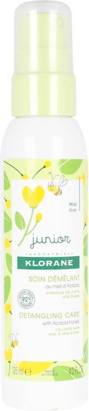 Dit product is speciaal ontwikkeld voor kinderen vanaf 3 jaar De spray is verrijkt met Acacia honing wat ervoor zorgt dat het haar ontwart wordt Geschikt voor kwetsbaar haar Het haar krijgt de natuurlijke glans terug en zal zijdezacht aanvoelen Het product bevat 92 natuurlijke ingrediA