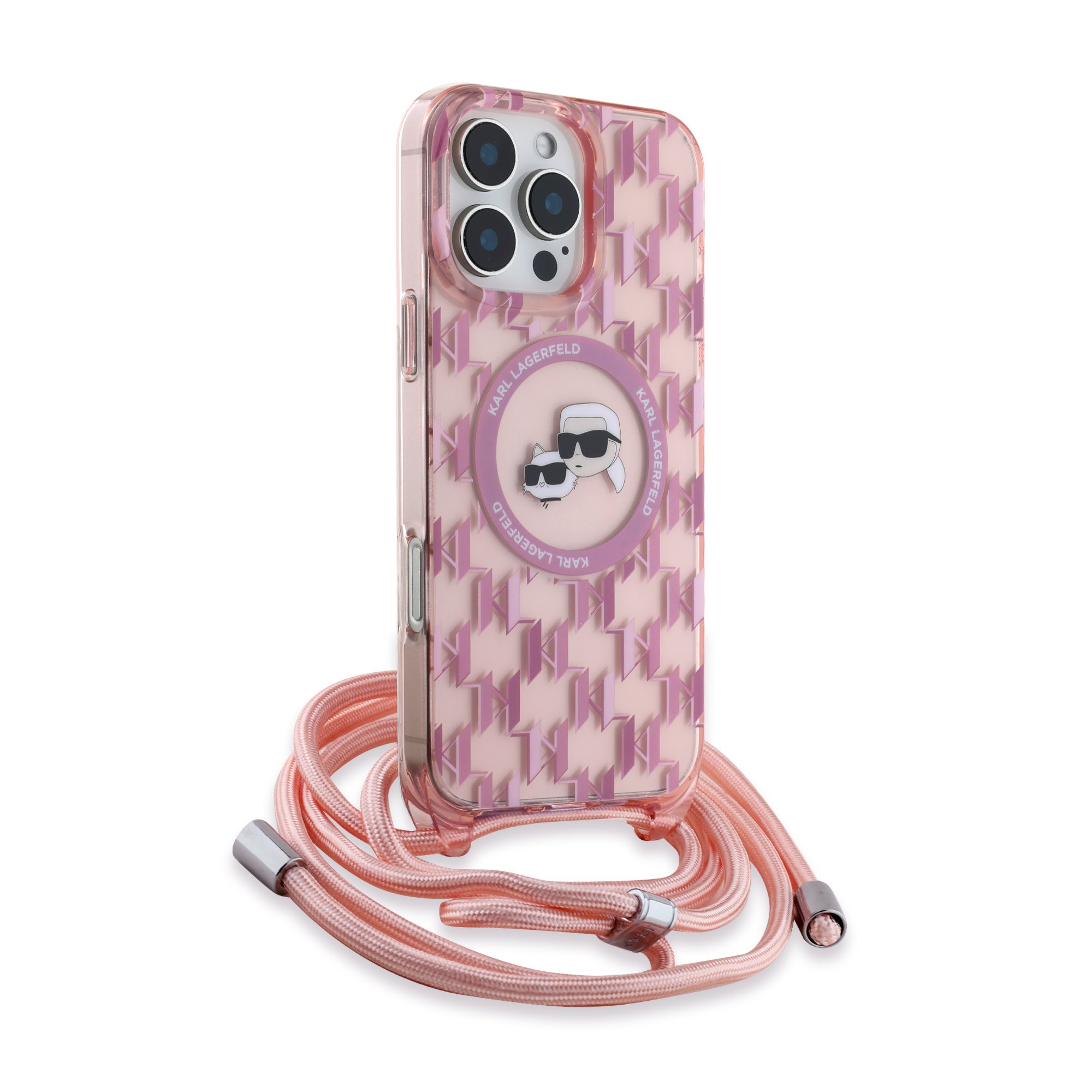 Karl Lagerfeld iPhone 16 Pro Back cover case – Magsafe IML KC heads – cord – Pink