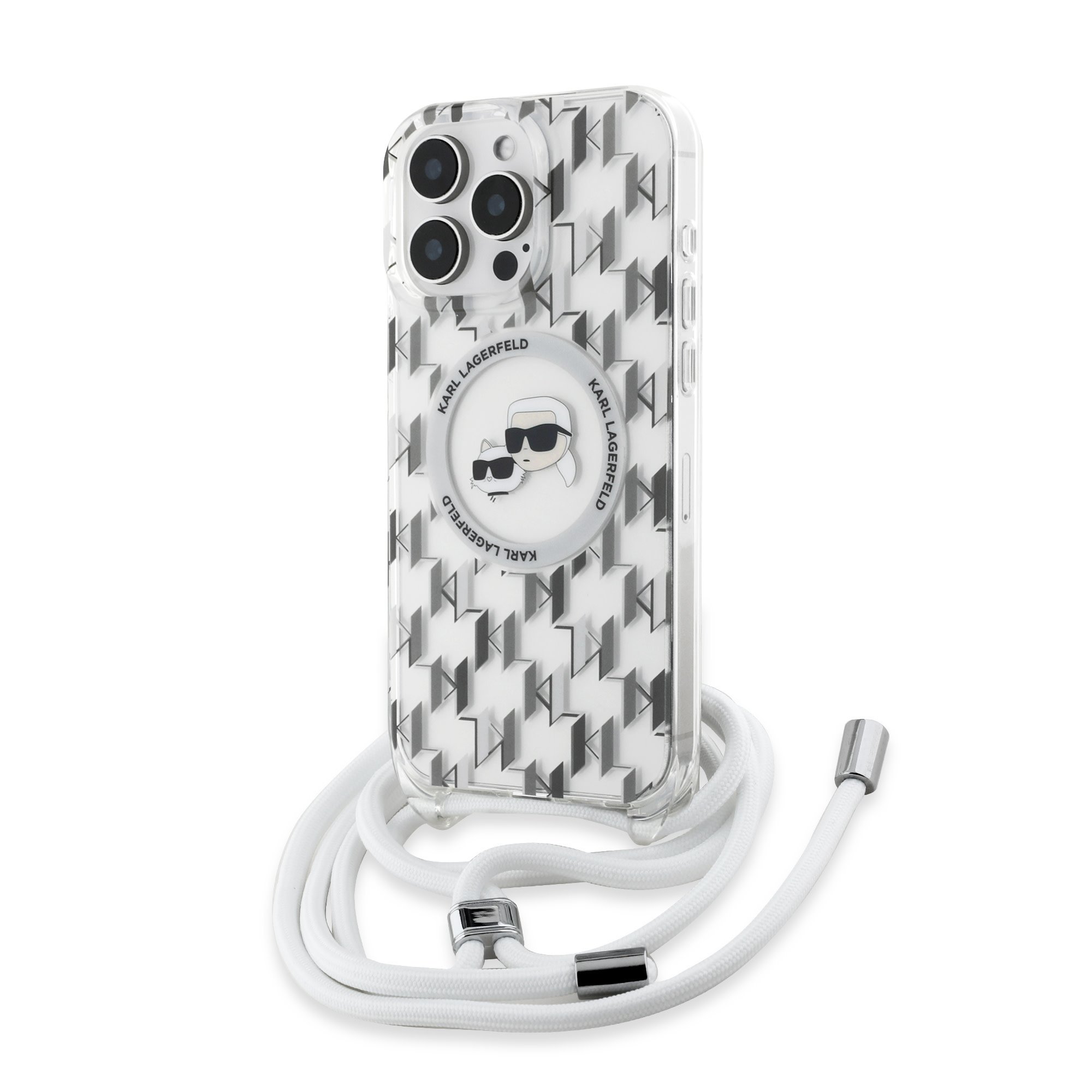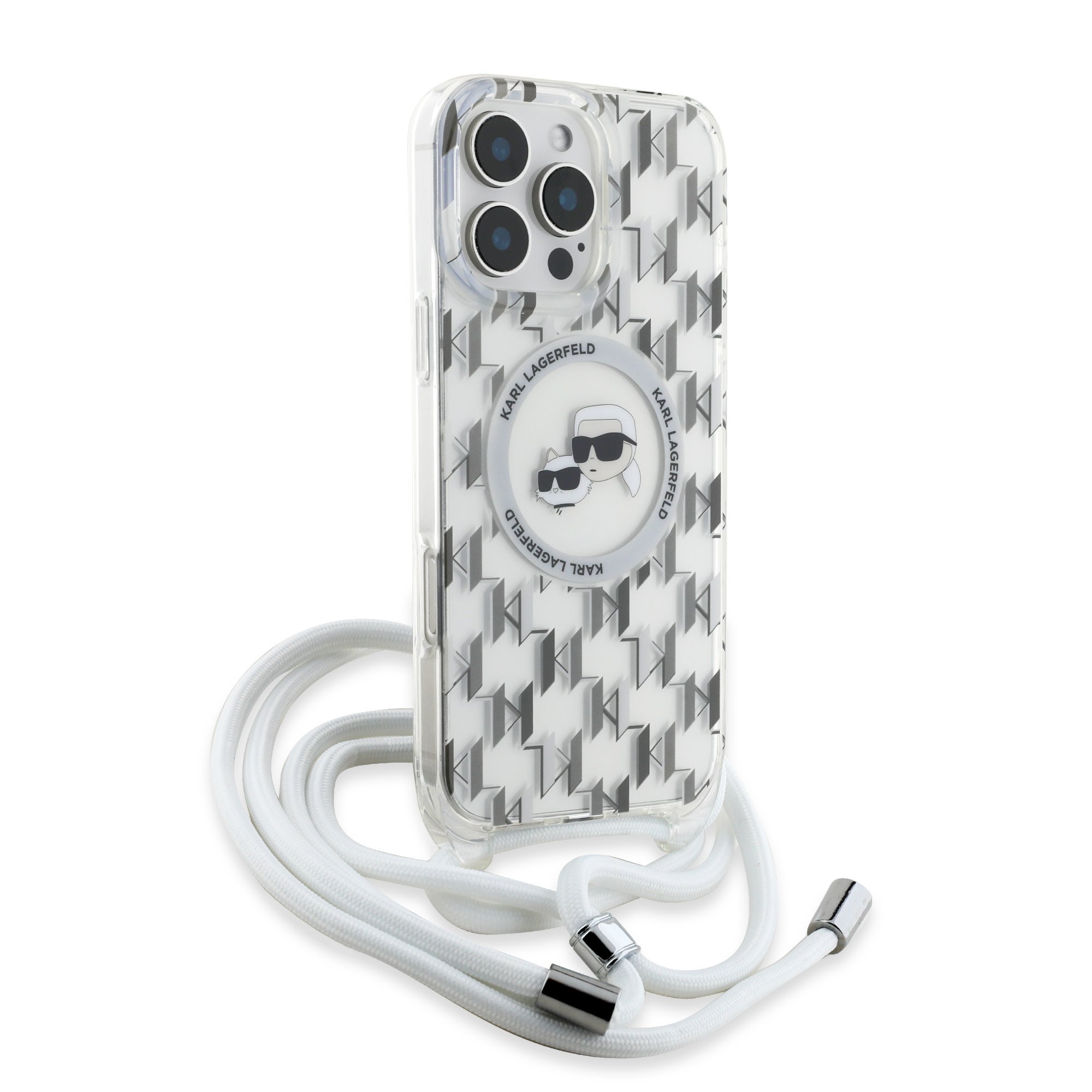 Karl Lagerfeld iPhone 16 Pro Back cover case – Magsafe IML KC heads – cord – Transparent