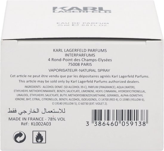 Classic yet sensuous the Karl Lagerfeld For Women Eau de Parfum is olfactory couture Inspired by the duality of Karl s approach to fashion elegant with a rebellious rock n roll edge the fragrance exudes irresistible magnetism The result is a vibrant signature composed as a fresh green floral with a bold selection of notes A spontaneous burst of lemon and lime open the fragrance enhanced by velvety peach skin In the heart a bouquet of rose creamy magnolia and exotic frangipani give the scent its signature flourish before a deep and dark dry down of musk and amber end For Her with a touch of seduction Top Notes Lemon Lime Velvety Peach Heart Notes Rose Magnolia Frangipani Base Notes Musks Dark Amber