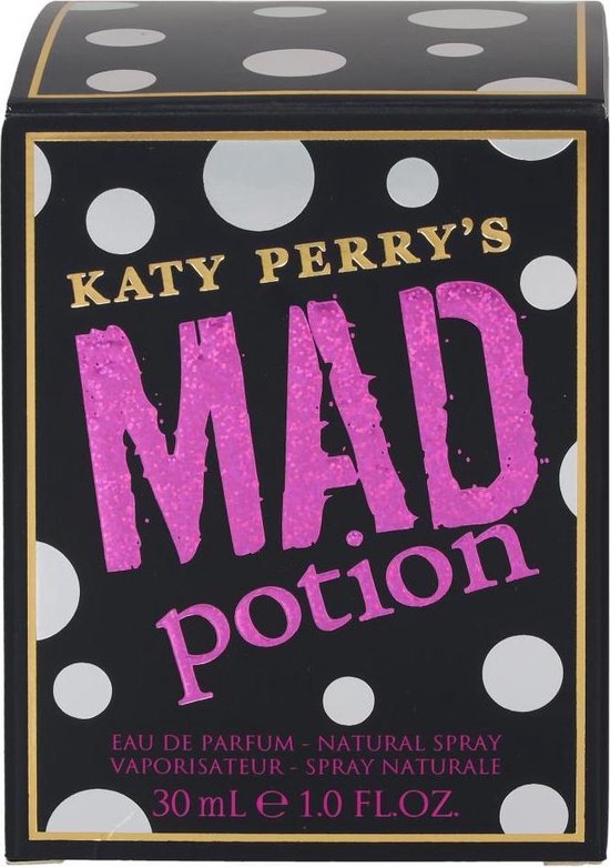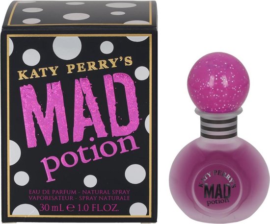 Licht en speels, dat is het Mad Potion parfum voor dames van Katy Perry. Dit magische elixir staat symbool voor de fantasierijke kant van de beroemde zangeres. De geur opent met sappige fruittonen en is betoverend bloemig in het hart en sluit warm af met aroma’s vol vanille en muskus. Het is tijd om iedereen om je heen te betoveren met Mad Potion!