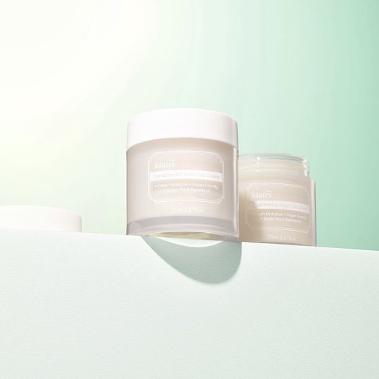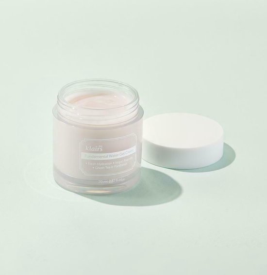 De Klairs Fundamental Water Gel Cream is een vochtinbrengende en hydraterende crème. De Klairs Fundamental Water Gel Cream is een vochtinbrengende crème. Zoals alle producten in de Klairs Fundamental lijn, biedt het de ‘basis’ van uw vochtinbrengende huidverzorging. Het bevat Panthenol en voor 63,7% Jeju groene theewater om te zorgen voor een diepe hydratatie en vocht inbreng in de huid. De crème is geschikt voor iedere huid in alle seizoenen. Gebruiksaanwijzing: Breng na het reinigen van de huid een gewenste hoeveelheid aan op de huid in de laatste stap van uw huidverzorgingsroutine. Inhoud: 70ml.
