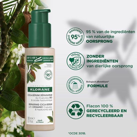 Het Cica Herstellende Serum met BIO Cupuaçuboter en hyaluronzuur herstelt en beschermt het haar vanaf het eerste gebruik*. Deze zeer voedende verzorging dringt diep de haarvezel binnen tot in de schors voor een diepe herstellende en beschermende werking. Wordt gebruikt tijdens het stylen, als herstellende en hittebeschermende verzorging, te verdelen van de lengten tot de punten, daarna zo vaak als nodig om dagelijkse bij te werken. Beschermt het haar tegen hitte tot 220 °C*.