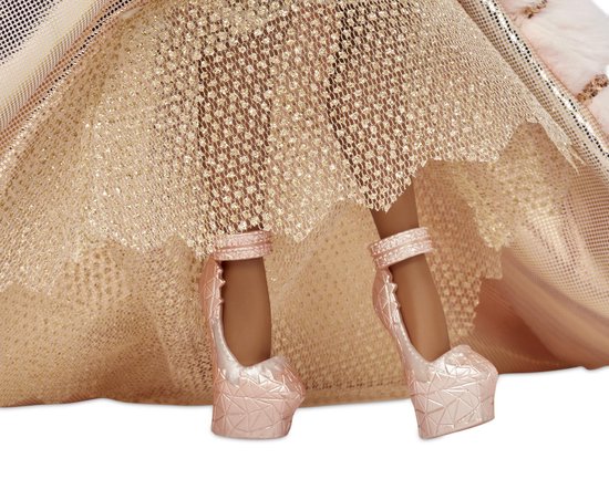 • GLINSTERENDE EN FONKELENDE MODE: deze koningin schittert van top tot teen in het goud, inclusief bijzondere stiksels op haar modieuze oudejaarsavond-outfit en haar luxe accessoires. Ze heeft een heel mooi gezichtje, prachtig gestyled haar en beweegbare ledematen voor heel veel houdingen
