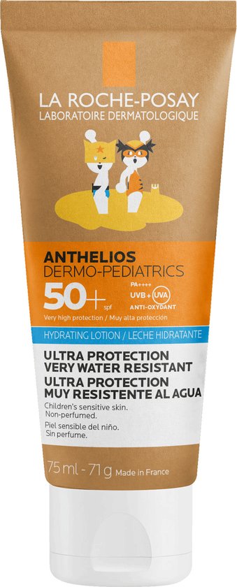 Na het zweten, zwemmen of ander contact met water of vocht kan de SPF-waarde van zonnebrand dalen. Deze speciale Wet Skin melkgel houdt dit tegen met een hydrofoob laagje, en kan zowel op een droge als natte huid worden aangebracht. Anthelios Kind Melk Wetskin zonnebrand met SPF50+ is geschikt voor een gevoelige huid, volgens onderzoek Deze zonnebrandcrème met factor 50+ heeft een klinisch bewezen efficiëntie op de zongevoelige huid, aangetoond met 29 in-vivo studies door dermatologische experts in fotodermatologie. Met XL-protect: voor een zeer hoge, brede, fotostabiele UVA/UVB- bescherming La Roche-Posay thermaal water: antioxiderend en kalmerend. Waterproof, zonnebrand voor kinderen voor dagelijks gebruikParfumvrij en hypoallergeen: geschikt voor elk huidtype, waaronder een gevoelige huidGeschikt voor jong en oud, waaronder baby’s vanaf 3 maandenBeschermt tegen en weerkaatst UVA- en UVB-stralen met (breedspectrum en fotostabiel) hoogwaardige SPF50+Voorkomt het plakken van zand APPLICATIE:Breng de zonnebrandmelk voor kinderen 15 minuten voor blootstelling aan de zon royaal aan op de huid; Smeer gelijk opnieuw na zwemmen, zweten of afdrogen (en in ieder geval om de twee uur om de hoge bescherming te bewaren); Stel baby’s en jonge kinderen niet direct bloot aan zonlicht, en bescherm de kinderhuid ook met een hoofddeksel, T-shirt en zonnebril.