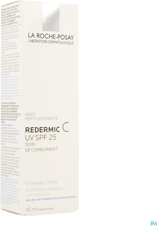 La Roche Posay Redermic C UV Soin de Comblement Anti Age OPVULLENDE ANTI AGING VERZORGING VOOR DE GEVOELIGE HUID Corrigeert rimpels ook diepe Verstevigt de huid Geeft een egale teint en doet roodheid vervagen Laat de huid onmiddellijk voller ogen La Roche Posay heeft een formule voor de gevoelige huid ontwikkeld met een hoge concentratie aan Vitamine C het bestanddeel tegen veroudering dat bekendstaat om zijn doeltreffend egaliserend effect op de teint en dat de aanmaak van collageen stimuleert om rimpels van binnenuit op te vullen en het steunweefsel te versterken Deze intensieve werking wordt aangevuld door 2 actieve bestanddelen Mannose een suiker dat de lichtinval op de huid optimaliseert en oneffenheden van bij het aanbrengen optisch doet vervagen Hyaluronzuur om de huid onmiddellijk gladder te maken UVB SPF 25 UVA PPD 10 filtersysteem voor een verhoogde bescherming tegen UVB en UVA de belangrijkste oorzaken van huidveroudering Met een opvullende frisse en smeltzachte textuur die een matte fluwelige finish geeft en niet vet aanvoelt Gebruik s Morgens enof s avonds aanbrengen op gezicht en hals