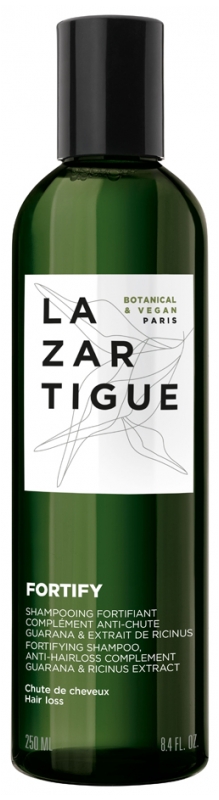 De Fortify Shampoo is verrijkt met Guarana en Ricinus De shampoo versterkt het haar en vermindert haaruitval Het haar wordt dag na dag sterker Guarana zorgt ervoor dat de vezels versterkt worden en dat de haargroei gestimuleerd wordt Het Ricinus extract verbetert de bloedsomloop De shampoo heeft een frisse muntgeur met tonen van citroen Gebruik Breng de shampoo aan op nat haar en masseer dit in met de vingertoppen Spoel tot slot af met water