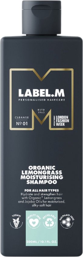 Label.M Lemongrass Organic Moisturising Shampoo – 300ml – Normale shampoo vrouwen – Voor Alle haartypes