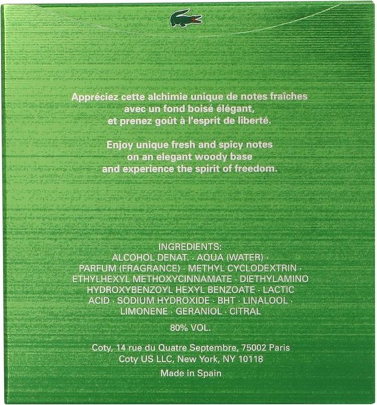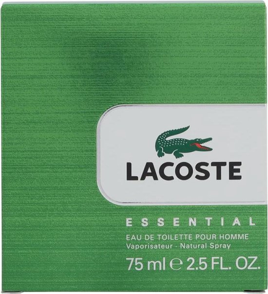 Lacoste Essential is een geur die de geest van vrijheid, plezier en ontspanning benaderd. Time-Release technologie maakt het mogelijk dat deze geur de hele dag fris blijft op je lijf. Top: Mandarijn, Bergamot, Tomatenplant bladeren, Zwarte bessen Midden: Zwarte peper, Rozen Basis: Patchouli en houttonen waaronder Sandelhout