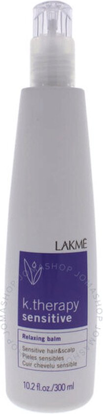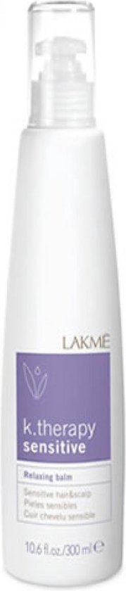 Lakmé K.Therapy Sensitive Relaxing Balm. Een balsem speciaal ontwikkeld voor de gevoelige of geïrriteerde hoofdhuid. Geeft directe verfrissing en een ontspannen gevoel voor de hoofdhuid. Bevat katoen peptide en aloë vera dat verzachtend werkt. Gebruik: Aanbrengen op de hoofdhuid en het haar, inmasseren. Niet uitspoelen!