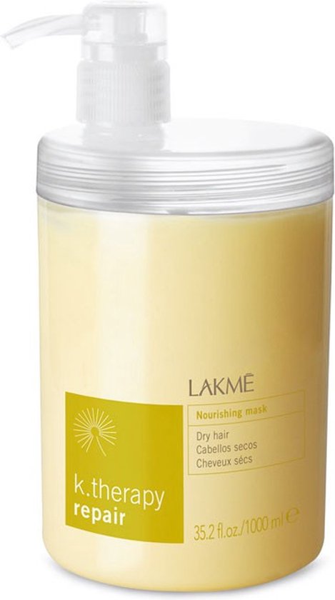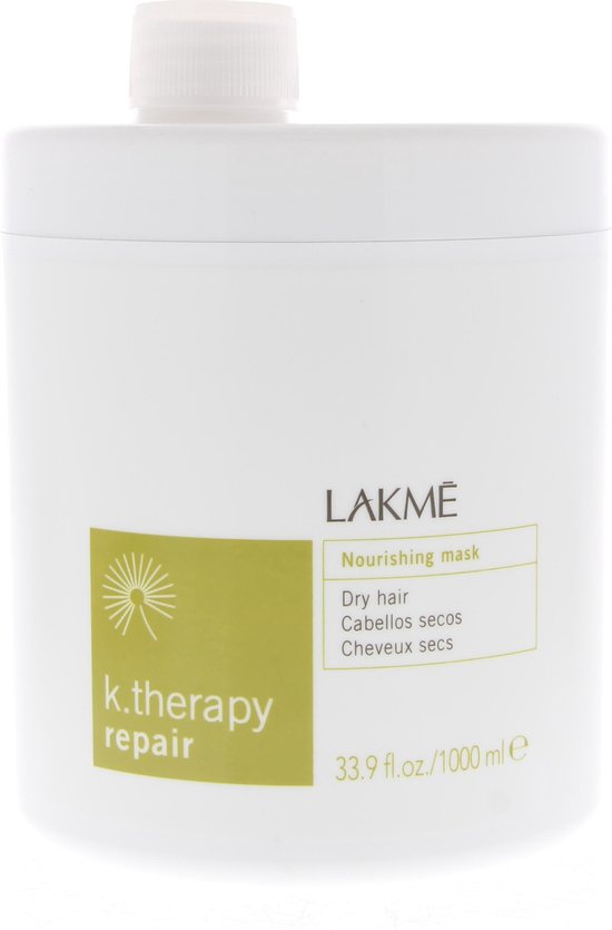 Lakmé K.Therapy Repair Nourishing Mask. Een masker dat direct werkt; hydrateert en herstelt droog haar. Bevat onder andere macadamia olie voor een langdurig verzorgd effect. Ontwart het haar, is niet vet. Gebruik: Na het wassen gelijkmatig aanbrengen op handdoekdroog haar, laten inwerken en uitspoelen.