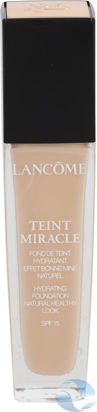 LancAme Face Make up Teint Miracle Hydrating Foundation SPF15 Deze licht dekkende foundation is voorzien van een heldere finish De foundation hydrateert de huid de hele dag door en geeft schoonheid en een stralende teint Na twee weken is de huid zichtbaar beter gehydrateerd verkwikt gladder en helderder De foundation is voorzien met een SPF 15 is geschikt voor de gevoelige huid is niet vet en niet comedogeen Kleur Beige Noisette